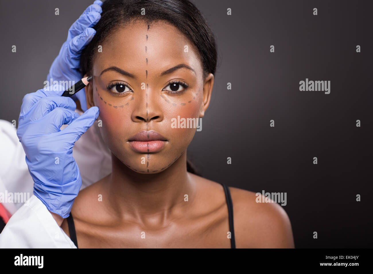 Young African Woman With Correction Mark For Plastic Surgery Stock Photo Alamy